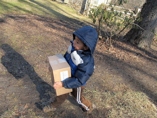 After some time to play on the playground, we discovered a problem! There was a huge pile of packages that were delivered to our building by mistake. They belonged to our friend, Roseanne, who teaches Science over in the Lower School. When we asked friends what we should do, they decided that we should deliver them! So we picked them up and headed on our way.